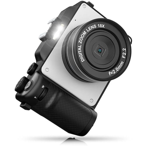 - ??Uma câmera criativa de apontar e fotografar!?A alça multifuncional possui um design ergonômico que coloca funções importantes como zoom de foco e botões de obturador na ponta dos seus dedos. Há até uma roda de rolagem sob o seu dedo indicador para fazer ajustes rápidos de 7 filtros de cor, para que você tenha total liberdade criativa para fazer fotos mais engraçadas!