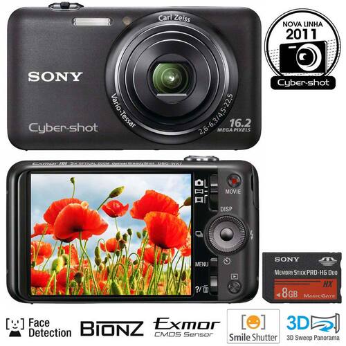 A Câmera Cyber-shot DSC-WX7/B também possui ainda a filmagem em Full HD, o Smile Shutter, Face Detection, entre outros.