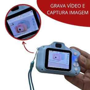 Câmera e Gravadora Infantil Digital Usb Azul - Importway As crianças vão se divertir com essa linda câmera digital Além de tirar fotos ela também faz vídeos, como uma câmera profissional de verdade. Seu pequeno vai se sentir um verdadeiro fotografo e poder registrar os momentos de suas brincadeiras, suas viagens, passeios com os amiguinhos.