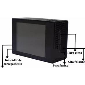Informações técnicas: - possui função de webcam funciona como câmera para o computador -cartão suportado: 32gb micro sd -sensor cmos -display lcd: 2,0 polegadas não touch -formato de compressão de vidro: h.264 -formato de vídeo/foto: mov/jpg -zoom 4x fracionado de 0.1 a 4.0 -ângulo: 140 -bateria: 900mah - 12 megapixels -idiomas: Português, inglês, francês, espanhol, alemão, italiano, chinês, japonês, russo. -conexão: usb 2.0 -duração bateria: 60 minutos. -tempo de carga: 120 minutos -dimensões: 29.8 x 59 x 41mm -peso: 44g Câmera esportiva full hd 1080p à prova dágua. - a prova d'água até 30 metros.