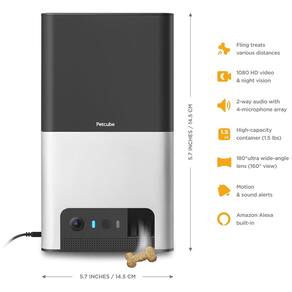 Monitoramento definitivo de animais de estimação Com a câmera petcube Bites Wi Fi para animais de estimação, assista ao seu animal de estimação com vídeo Full HD 1080p, visão ultra grande angular de 160 e visão noturna. Veja de perto com zoom 4x. Ouça e fale com áudio bidirecional de alta qualidade. Configuração rápida de 2 minutos Petcube Bites 2 é a única câmera pet compatível com conexões Wi Fi de 2,4 GHz e 5 GHz. iOS 11 e superior, Android 7.1.2 e superior são necessários. Trate seu animal de estimação remotamente Jogue guloseimas a curta, média ou longa distância ou agende a distribuição automática de guloseimas por meio do aplicativo Petcube . Suporta uma ampla variedade de guloseimas secas e crocantes para cães e gatos. 680g de capacidade de tratamento. Alertas inteligentes de som e movimento Notificações em tempo real informam quando seu animal de estimação está ativo e você precisa fazer o check in. Assistente Alexa integrado Tocar música, responder perguntas, ouvir notícias, controlar dispositivos domésticos inteligentes, pedir as guloseimas favoritas do seu animal de estimação e muito mais tudo por meio da câmera inteligente do seu animal de estimação Bites 2. A funcionalidade do assistente de voz é opcional Marca: Não Informado