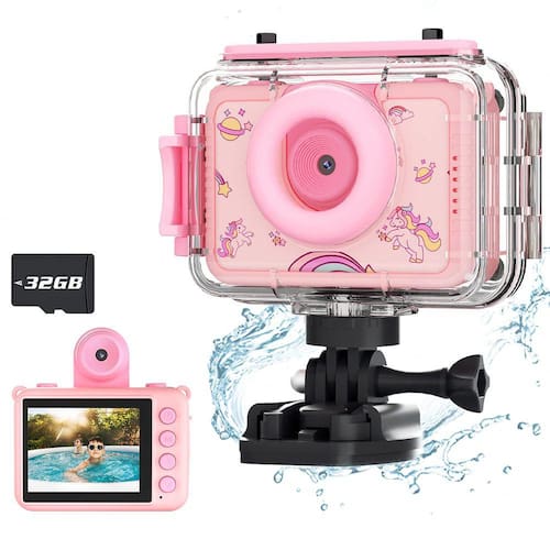 Câmera impermeável infantil BRYSETEN — Presentes de aniversário para meninasA câmera infantil Bryseten é uma câmera infantil à prova d'água projetada para meninas por um fabricante profissional. Esta câmera pode ajudar as crianças a capturar a beleza da natureza, compartilhar momentos memoráveis da vida e transmitir a felicidade entre as crianças. Se você está procurando um presente especial para seu filho, essas novas câmeras podem ser uma boa escolha para você! Dicas quentes:1. Devido ao longo tempo de transporte, a bateria da câmera infantil estará em baixa potência. Use nosso cabo USB de carregamento antes de usar.2. Se quiser usar a função de reprodução de música da câmera, você precisa criar uma pasta no formato MP3 no cartão SD e, em seguida, copiar a música no formato MP3 para ela para usar a função de música MP3 da câmara.3. Há um filme protetor de tela na tela da câmera infantil. Por favor, retire o filme antes de usar. Você também pode guardá-lo para proteger a tela da câmera contra arranhões. Acessórios: 1* câmera infantil, 1* estojo impermeável para câmera, 1* cordão, 1* cartão SD de 32 GB 1* cabo de dados USB, 1* manual do usuário, 1* suporte A e 2* Câmera selfie com alça de capacete: lente flip Pixel mais alto: 12 MP Tamanho da tela: tela IPS de 2,0 polegadas Profundidade à prova d'água: 100 pés Armazenamento: cartão de memória bônus de 32 GB função: Música MP3?Jogo e assim por diante