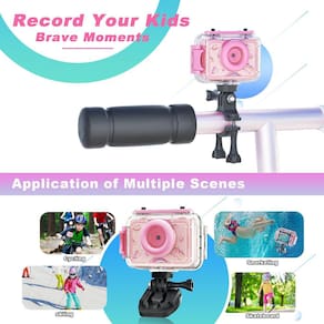 -?Brinquedo ao ar livre para crianças?Nossa câmera à prova d'água para crianças pode não apenas gravar o mundo subaquático, mas também em ciclismo, esqui, rafting, mergulho com snorkel e outras atividades ao ar livre. As crianças podem escolher os acessórios adequados para combinar com as atividades correspondentes e registrar momentos corajosos!