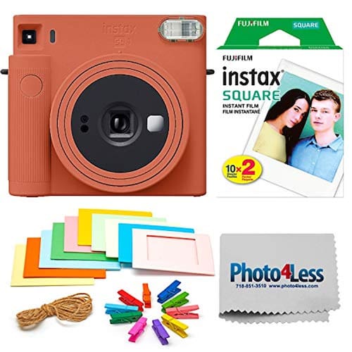 Fujifilm Instax Square SQ1 Laranja Terracota Fujifilm Filme Instax SQUARE Instant Filme (20 exposições) Molduras suspensas para filme quadrado Pano de limpeza de - O KIT INCLUI - Câmera quadrada 1 + 20 folhas de filme + molduras