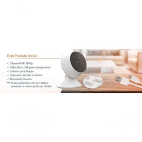 Possui sensor de movimento, microfone bidirecional, visão noturna e gravação em cartão Micro SD ou na nuvem por 7 dias de teste (após este período é necessária assinatura).