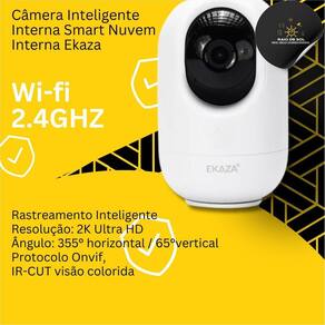 Câmera Inteligente Wi-Fi Nuvem Interna EKAZA Visão Noturna Câmera Inteligente Wi-Fi Nuvem Interna EKAZA Visão Noturna A Câmera Inteligente Wi-Fi Nuvem Interna EKAZA Visão Noturna é a solução perfeita para quem procura segurança e conveniência em um único dispositivo. Principais Características: Conexão com nuvem: A integração com a nuvem possibilita o armazenamento seguro e acessível das gravações, permitindo visualizar as imagens de qualquer lugar e a qualquer momento. Alta resolução: Com qualidade de imagem em resolução máxima de 3MP Ultra HD 2K 2304x1296 , você terá detalhes nítidos em cada cena capturada. Visão noturna: A função de visão noturna com 4 LEDs infravermelhos oferece monitoramento eficaz mesmo em ambientes com pouca iluminação, garantindo segurança 24 horas por dia com alcance de até 10m. Detecção de movimento: Receba notificações em tempo real sempre que a câmera detectar movimentos, mantendo você informado sobre o que acontece em sua residência ou escritório. Mais Detalhes do Produto: Controle via aplicativo: Acesse a câmera remotamente através do aplicativo dedicado, visualizando as imagens em tempo real e ajustando as configurações de forma simples e intuitiva. Compatibilidade com assistentes de voz: Integre a câmera com assistentes virtuais como Alexa e Google Assistant para facilitar o controle do dispositivo. Armazenamento: Suporta armazenamento em nuvem e em Cartão TF de até 256GB não incluso , oferecendo opções de backup para suas gravações. Especificações: Modelo: EKGD-T4117 Lente: 2.8mm 108 Resolução Máxima: 3MP Ultra HD 2K 2304x1296 Visão Noturna: 4 LEDs Infravermelhos, alcance de 10m Conexão: Wi-Fi 2.4 GHz, Bluetooth, Onvif Fonte de Energia: DC5V 1A Armazenamento: Nuvem, Cartão TF até 256GB, não incluso Ângulo de rotação: H 355; V 110 Áudio Entrada/Saída: Intercomunicador de voz bidirecional Segurança: WEP/WPA/WPA2 Temperatura de operação: -10C 50C / 95% sem condensação Aplicativos: Ekaza, Android, Tuya, Smart Life e NovaDigital. : 12 meses contra defeitos de fabricação da EKAZA. Dicas de Utilização: Posicione a câmera estrategicamente para obter o melhor ângulo de visão da área desejada. Ajuste a sensibilidade de detecção de movimento para evitar notificações excessivas. Verifique regularmente a conexão Wi-Fi para garantir a transmissão contínua das imagens. Observação: é importante ter uma rede Wi-Fi 2,4GHz com boa capacidade para gerenciar os dispositivos de forma eficaz. Instabilidades na conexão podem interferir na resposta aos comandos via aplicativo e assistentes de voz, e na execução de rotinas automáticas. Recomenda-se consultar um técnico da operadora para garantir uma conexão estável. Homologação Anatel: 149822010251 Marca: Não Informado