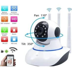 Câmera IP três antenas, wi fi, visão noturna, áudio bidirecional, HD, Perfeito para residências, lojas, ambientes internos, possui três antenas o que permite uma melhor capitação do sinal wi fi deixando sua câmera mais potente.