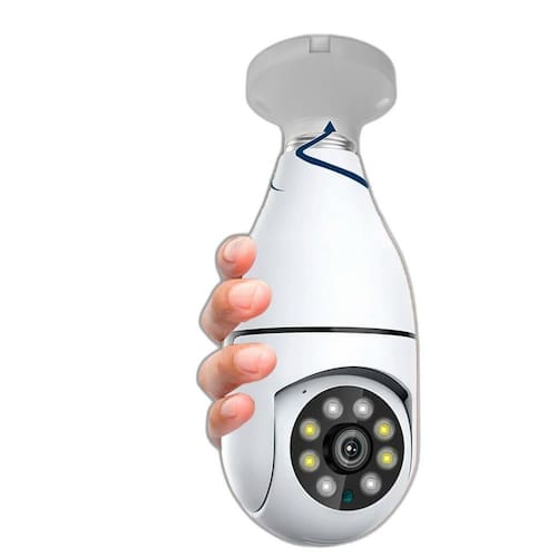 - sistema extremamente simples de instalar, basta colocar em um bocal de lâmpada comum, tem o tamanho e formato de uma lâmpada de led comum, discreto. Conecta-se a sua rede wifi e a partir daí você pode visualizar e interagir de qualquer lugar do mundo através do seu celular ou tablet. Se alguém entra no ambiente você receberá uma mensagem em seu telefone e poderá visualizar/interagir com a pessoa.