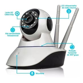 Camera ip onvif wifi app yoosee Câmera ip wireless onvif ekxy-6310 3 antenas sensor noturno Mantenha a vigilância durante 24 horas por dia da sua casa, escritório, fábrica e entre outros lugares com total conforto e comodidade. Possui alertas de movimento e infravermelho, além de poder controlar a câmera através do app no celular. Você acessa as imagens pela internet 4g ou wifi pelo aplicativo visualizando em tempo real e movimentando a câmera. Ela possui um sistema de áudio bidirecional: você ouve tudo que acontece no ambiente e também pode falar para quem estiver no local. Especificações técnicas: Resolução: full hd 1920x1080p/1280x720p/640x360p/320x240p Sensor: 1/4 cmos Visibilidade noturna: 15 metros Infravermelho: sim Alerta de movimento: sim Armazenamento: micro sd/sdhc/sdxc de até 32gb não incluso Sensor: cmos Ethernet: 10/100mbps rj-45 Wireless: ieee 802.11b/g/n - 2,4ghz Compatibilidade mobile: ios e android Sistemas operacionais: windows 7, windows 8, windows 10 Formato de compressão de vídeo: 1,3mp Iluminação mínima: 0,5 lux Rotação: 355 - horizontal / 120º vertical Ângulo de visão: 75º Lente: 3,6mm Alimentação: 110/220v Consumo de energia: 5w Dimensões: 7x10,5x13cm Peso: 480g App: yoosee qr code na caixa do produto que direciona para o link de instalação do app no celular . Itens inclusos 01 wireless ip câmera 01 fonte de alimentação 01 manual 01 suporte de fixação 02 buchas e parafusos : 6 meses Homologação Anatel: 052051802149 Marca: Não Informado
