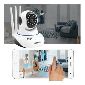 Câmera ip wifi wireless sem fio hd 3 antenas visão noturnaIdeal para monitoramento de residências, comércios, escolas, lojas, escritórios, etc. E pode ser utilizada como baba eletrônica.Características smart home câmera:- vigilância durante 24 horas por dia da sua casa, escritório, fábrica e entre outros lugares com total conforto e comodidade;- fácil configuração;- possui alertas de movimento, infravermelho, alertas no celular e muitos outros recursos;- conexão via wifi com muita praticidade;- equipada com infravermelho, permite visualizar imagens no escuro total;- gire sua câmera para os lados, para cima e para baixo e veja tudo em alta definição;- câmera equipada com microfone e mini falando. Sendo possível ouvir com clareza o áudio do local;- áudio bidirecional: possibilita comunicação através do mini auto-falante da câmera com que está do outro lado;- gravação contínua ou com detecção de movimento, que possibilita poupar espaço no cartão micro sd;- fixe sua câmera no teto, parede ou simplesmente deixe-a em cima da estante.Especificações técnicas:- quantidade de antenas: 3;- resolução: 1280x720- sensor: 1/4 cmos;- visibilidade noturna: sim;- infravermelho: sim;- ir-cut: sim;- alerta de movimento: sim;- consumo de energia: 5w;- armazenamento: micro sd/sdhc/sdxc de até 128gb não incluso ;- sensor: cmos;- wireless: ieee 802.11b/g/n - 2.4g / 5g- suportes operacionais suportados: windows 98, windows 7, windows 8, windows xp, windows vista, windows 10 ios, android, windows, blackberry- formato de compressão de vídeo: 1,3mp;- iluminação mínima: 2 lux;- rotação: 355 - horizontal / 120º vertical;- ângulo de visão: 75º;- lente: 3,6mm;- alimentação: 110/220v;- dimensões: 7x10,5x13cm;- peso: 600g;Na embalagem contém:- 01 - camera ip wifi wireless sem fio hd 3 antenas visão noturna;- 01 - fonte de alimentação bivolt;- 01 - cabo de alimentação;- 01 - suporte de fixação;- 01 - kit de buchas e parafusos. Homologação Anatel: 052051802149