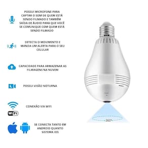 Câmera Lâmpada Led IP Wifi 360 - Vigilância Panorâmica com Visão Noturna HD e Sensor de Movimento Câmera em formato de lâmpada com visão de 360 graus Olho de Peixe bivolt.
