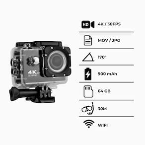 - Ideal para atividades como esportes extremos, ciclismo, motocross, escalada, mergulho, e até mesmo como câmera de segurança doméstica. Pode ser utilizada para registrar suas aventuras em qualquer ambiente, seja na terra, no ar ou na água.