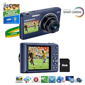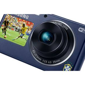 A Samsung Smart DV2014F é a câmera oficial da Seleção Brasileira e traz um Modo de Cena Futebol que realça fotos feitas em estádios. Com ela, você ainda aproveita a vantagem de comandos simples e recursos bastante práticos. Ela possui 16.1MP, lente Samsung, estabilização digital (DIS), zoom óptico permite de 5x e outras funcionalidades avançadas. Tem dois visores LCD, um traseiro de 2,8 polegadas para você enquadrar perfeitamente sua cena e um dianteiro para auto-retratos. Compartilhe suas fotos e vídeos em redes sociais instantaneamente. O produto é perfeito para levar em viagens, passeios ou para a arquibancada.