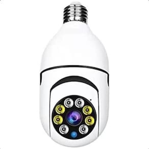 apenas uma câmera consegue cobrir uma área bem maior do que uma câmera comum. Você consegue girar a imagem através do celular e controlar o zoom. É possível acender a luz remotamente através da internet, conversar com quem está no local e você ouve tudo o que está sendo falado onde a câmera esta instalada. Sistema extremamente simples de instalar, basta colocar em um bocal de lâmpada comum, tem o tamanho e formato de uma lâmpada de led comum, discreto. Conecta-se a sua rede wifi e a partir daí você pode visualizar e interagir de qualquer lugar do mundo através do seu celular ou tablet. Se alguém entra no ambiente você receberá uma mensagem em seu telefone e poderá visualizar/interagir com a pessoa. Características auto tracking - rastreamento automático monitoramento 360o - inclinação automática ou por controle remoto sistema night vision - visão noturna e diurna com infra vermelho alarme de movimentação - dispara o alarme no seu celular ao detectar movimentos suspeitos sistema de áudio - microfone com gravador de áudio detecta todos os sons do ambiente alta durabilidade - câmera tem o grau de proteção ip44 proteção contra respingos de água. Não orientamos a instalação em áreas totalmente descobertas acesso remoto - movimentação manual via controle remoto através do seu celular