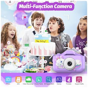 Câmera Multifuncional – 12 MP e vídeo 1080p, zoom digital 8x, 28 cenários e 6 efeitos especiais. Bateria recarregável com 1,5-2 horas de uso contínuo.