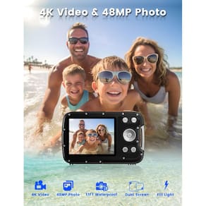 -?Câmera impermeável 4K Ultra HD e 48MP com foco automático?Esta câmera à prova d'água captura imagens coloridas HD de 48 MP e suporta gravação de vídeo 4K Ultra HD para gravar claramente seus vídeos de viagens subaquáticas. Não é necessário pressionar o obturador até a metade para focar. Basta apontar a câmera para o objeto até que ele fique bem focado e, em seguida, pressionar o obturador para capturar a imagem desejada.