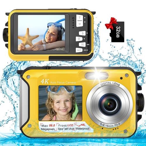 IMPORTANTE: Se for um produto elétrico, ele pode ser compatível com uma tomada de 110 volts. Se utilizado fora dos Estados Unidos, pode ser necessário um conversor de voltagem para garantir a operação adequada. Verifique se o produto que você está comprando é elétrico antes de considerar essas informações. Câmera subaquática -?Câmera impermeável 4K 30FPS?A resolução máxima de vídeo 4K 30FPS fornece mais detalhes e clareza. Isso faz com que as imagens pareçam mais realistas e detalhadas, resultando em melhor desempenho de cores no vídeo capturado. A resolução 4K normalmente tem um desempenho de cores mais vibrante, o que torna o vídeo capturado mais vívido. -?Design de tela dupla para selfies?Esta câmera digital à prova d'água vem com tela IPS frontal de 2,8” e traseira de 1,8”. Você pode tirar fotos com todos os seus parceiros no mesmo quadro. Também é muito leve, portátil e fácil de usar. Perfeito para crianças em reuniões familiares, parques aquáticos e férias. Com a câmera embutida com temporizador automático de 2s, 5s, 10s, você nunca perderá nenhuma foto de sua vida maravilhosa. -?Câmera de 48 MP com foco automático?Esta câmera com resolução de imagem de 48 MP pode capturar cada momento com detalhes nítidos e clareza incomparável. A câmera tem uma função de foco automático, pressione o obturador até a metade para obter o foco e o quadro de foco na tela fica verde e, em seguida, pressione totalmente o obturador para tirar lindas fotos; iniciantes também podem ser úteis. -?Câmera subaquática de 11 pés?Esta câmera pode ser submersa 11 pés debaixo d'água sem um estojo à prova d'água. Antes de ficar submerso, tenha cuidado para garantir que a porta da bateria esteja trancada para impermeabilizar a câmera. Você pode levá-la para mergulhar, nadar, mergulhar com snorkel e outras atividades. Para pegá-lo, você não perderá nenhum cenário que queira gravar. -?Dicas quentes?Esta câmera digital suporta cartão micro SD de até 128 GB(inclui cartão de 32 GB). Nova bateria recarregável de 1250mAh atualizada, você nunca precisa se preocupar com o fato de sua câmera estar sempre a caminho de carregar. Além disso, nossa câmera à prova d'água para mergulho também permite que você carregue durante a gravação. Isso significa que você não precisa se preocupar em ficar sem energia ao fotografar.