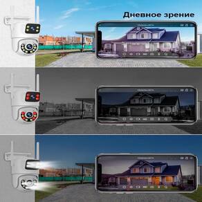 Lente dupla, tela dupla, alarme de luz policial, rastreamento humanóide, monitoramento de interfone de voz bidirecional 360, visão noturna colorida, IP66 à prova d'água, monitoramento remoto de telefone celular, compartilhar vídeo, armazenamento do cartão do SD, 24 horas gravação video.
