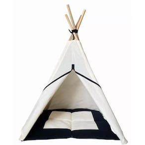 Confeccionada em tecido algodão cru com detalhe na barrinha em preto Medidas aproximadas: 1,05m x 0,70m x 0,70m altura até o topo da madeira x largura x profundidade