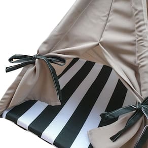 Cabana oca para cães e gatos Produto é fácil de montar, transportar e limpar. Pode ser utilizado em casas e apartamentos. Confeccionada em tecido de algodão e poliéster, estrutura de madeira de reflorestamento (ecológica), espuma e protetores de borracha, para não arranhar pisos. Medindo aproximadamente: 1.05 altura externa 85 cm altura interna x 70 cm largura x 70 cm profundidade Compõe o produto: 01 cabana 01 colchonete / cama 04 hastes de madeira Acompanha: 1 almofadinha