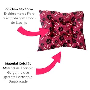 O produto é feito com tecido de gorgurinho, enchimentos de fibras siliconada com flocos de espuma que abraçam seu pet e servem de travesseiro, leve, macio e fácil de transportar, podendo ser dobrado ou até mesmo enrolado.
