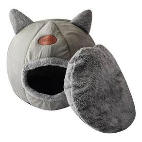 Essa casinha é indicada para cães e gatos de até 12 kg e possui medidas de 37x37x35cm. Ela é confeccionada com tecido de microfibra, algodão e plástico PP, na cor cinza.