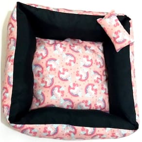Caminha para cachorros e gatos; Tecido 100% algodão; Enchimento antialérgico; TNT altamente reforçado; Todo revestido em zíper, o que facilita a retirada da capa para lavar; Formato quadrado; Todas as caminhas acompanham travesseiro em formato retangular; Cor: Rosa estampa do unicórnio; Tamanho M Medidas aproximadas: 60 cm X 60 cm, e 25 cm de altura Estampa conforme foto; Muito macio, confortável, e durável. Marca: Nica pet