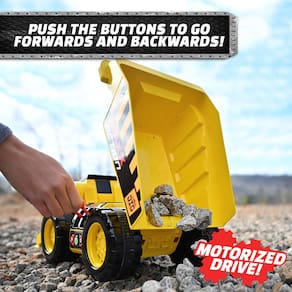 - Mais de 3,6 kg de potência de despejo: este caminhão tem uma grande calha de caminhão basculante para encher com brinquedos, sujeira, blocos e muito mais. Os sons de ação realistas ajudarão a criar o ambiente de um canteiro de obras.