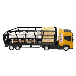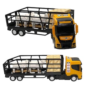 Especificações Técnicas: - Material: Polipropileno, Papelão e Adesivo - Dimensões do Caminhão: - Comprimento: 55 cm - Altura: 16 cm - Largura: 10 cm - Dimensões dos Animais: - Comprimento: 12 cm - Altura: 9,5 cm - Largura: 3 cm - Peso do Caminhão: Aproximadamente 310 g - Peso dos Animais: Aproximadamente 40 g - Cores: Amarelo