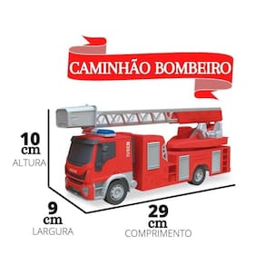 Caminhão Bombeiro Miniatura Iveco Brinquedo Infantil Usual 32 Cm Cor: Vermelha Um super caminhão do corpo de Bombeiros com auto escada articulada giratória e outros incríveis acessórios. Miniatura com Escala de 1/30, cheia de detalhes deixando muito mais semelhante com o de verdade - Escada com articulação - Calotas Cromadas Benefício: Estimula a interação entre pais e filhos, coordenação manual, a criatividade e imaginação da criança. Conteúdo da Embalagem : 01- Caminhão Iveco Bombeiro Vários Acessórios AVISOS IMPORTANTES: Idade Recomendada: A partir de 3 anos de idade. Não recomendado para menores de 3 anos, pois contém partes pequenas que podem ser engolidas. As cores e medidas podem sofrer pequenas variações entre as imagens e especificações mostradas acima. : 90 dias por defeito de fabricação. A não cobre defeitos ou danos causados pelo uso indevido. Certificado de segurança: 009922/2019 Marca: Não Informado Ean: 17898300575836