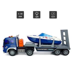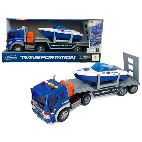 Caminhão Cegonha com Lancha 1:16 Luz e Som e Fricção - Brink Center