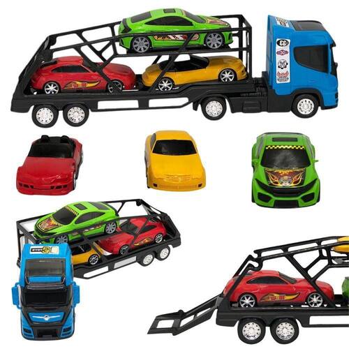 Caminhão Cegonha Grande com 03 Carrinhos Cabine Azul Caminhão Cegonha Grande com 03 Carrinhos Cabine Azul ============================================================ Contém: 01 Caminhão Cegonheira 03 Carrinhos