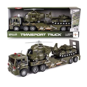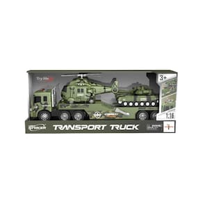 O Caminhão Cegonha Militar com Dois Veículos 1:16 – Brink Center é ideal para crianças que gostam de aventuras cheias de ação e estratégia. Com design robusto e detalhes realistas, ele transporta dois veículos militares: um helicóptero e um tanque, proporcionando inúmeras possibilidades de brincadeira. Na escala 1:16, o brinquedo oferece ótimo tamanho para manuseio e maior realismo nas brincadeiras. Produzido com material resistente e acabamento de qualidade, estimula o faz de conta, a imaginação e a coordenação motora. Uma excelente opção de presente para pequenos fãs do universo militar.