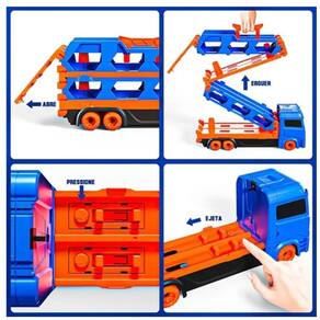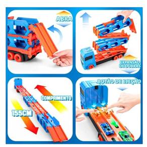 O Caminhão Cegonha Transport é muito divertido! Ele vira uma pista com 1,55 metros com botão para impulsionar os carrinhos! Com alça, acompanha 02 carrinhos, mas tem capacidade para guardar até 18 carrinhos. ESPECIFICAÇÕES DO PRODUTO: CONTEÚDO DA EMBALAGEM: 01 caminhão cegonha 02 carrinhos IDADE RECOMENDADA: Acima de 03 (três) anos Vira uma pista com 1,55 metros! Com 02 carrinhos miniatura; Capacidade para até 18 carrinhos; Composição: Caminhão em Plástico PP. Carrinhos com base em plástico PP e carroceira em metal; Medidas: Caminhão 37 cm (comprimento) Carrinhos 7 cm (comprimento) Pista 155 cm (comprimento)