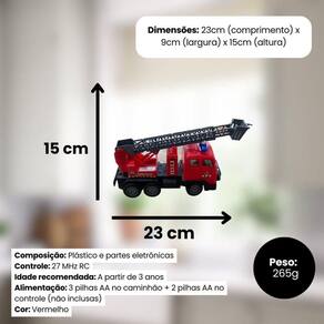 1 Caminhão de Bombeiro com Controle Remoto - Vermelho