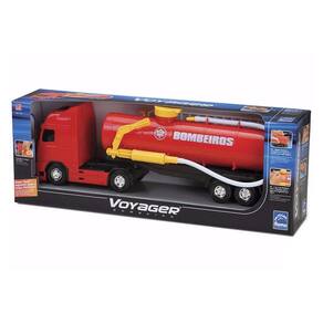 CAMINHÃO DE BOMBEIRO - SOLTA ÁGUA - VOYAGER - 43 cm - ROMA: o Voyager Bombeiro é um caminhão muito divertido. Esse caminhão de brinquedo esguicha água a longa distância para deixar a brincadeira muito mais divertida. Com 43 centímetros de comprimento e rodinhas livres, os pequenos podem ser como verdadeiros bombeiros e salvar o dia. O brinquedo possui reservatório que pode ser enchido, e também, através da alavanca bombeia a água. Ao encaixar a mangueira na ponta da escada pode-se direcionar o jato. Esse incrível caminhão de bombeiro de brinquedo, que solta água, vai realizar o sonho das crianças que querem ser bombeiros! Para brincar é fácil: 1 - Encha o tanque com água 2 - Depois encaixe a mangueira no suporte, e aponte para onde quiser 3 - E ai, é só bombear com a alavanca, que a água vai esguichar pra valer INFORMAÇÕES: • Produto: Caminhão Voyager Bombeiro • Marca: Roma Brinquedos • Coleção: Linha Voyager • Tamanho: 43.0 cm x 9.0 cm x 13.0 cm • Embalagem: 48.0 cm x 10.0 cm x 16.5 cm • Material / Composição: Plástico • Conteúdo: 1 Caminhão • Certificado: CE-BRI/IQB 000280 NM 300/2002 OCP 0006 • Recomendação: para crianças a partir de 3 anos de idade BENEFÍCIOS DE BRINCAR: - Eleva a autoestima - Exercita o imaginário - Desenvolve a criatividade - Desenvolvimento neuropsicológico - Estimula habilidades motoras básicas - Incentiva a comunicação e linguagem - Desenvolve aspectos emocionais e afetivos AVISO: As imagens são meramente ilustrativas. As cores e estampas dos produtos podem conter pequenas variações. As informações são de responsabilidade do fabricante ou fornecedor. ATENÇÃO: • Comprar Caminhão Voyager Bombeiro - Roma ficou fácil. Aproveite nossas condições de pagamento. Oferta válida por tempo limitado ou enquanto durarem os estoques. Entrega para todo o Brasil!
