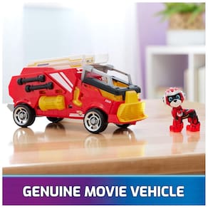 O veículo de resgate PAW Patrol The Mighty Movie é um caminhão de brinquedo com um design elegante, medindo 7 polegadas de comprimento e mais de 3 polegadas de altura. Ele apresenta uma escada de resgate inclinável e emocionantes efeitos sonoros com luzes piscantes sincronizadas. O veículo vem com uma figura de ação do Marshall vestido com seu uniforme vermelho do filme, com seções translúcidas e um capacete legal.