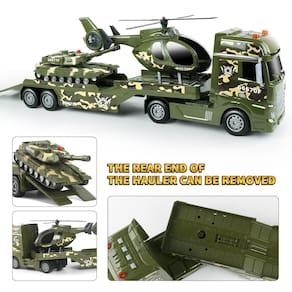 B0CS6HHRRC - ?Conjunto de caminhões do exército infantil 3 em 1?: os brinquedos infantis do exército incluem caminhões de transporte extra longos e helicópteros, tanque, vêm com luzes piscando e fazem vários sons de buzina de trânsito, energia inercial, as juntas do brinquedo são muito flexíveis. Precisa de 6 pilhas LR44 de 1,5 V (incluídas). - ?Veículo de transporte multiuso?: Tamanho do caminhão: 65 x 11 x 17 cm. A cabeça do caminhão pode ser separada, vire à esquerda e à direita, e o quadro traseiro pode se mover para cima e para baixo para simular a cena de transporte de um semirreboque real. - ?Helicópteros e tanque?: tanque com luz e música, a hélice do helicóptero pode ser girada manualmente. Potência inercial do tanque. Várias maneiras de brincar, use a imaginação do seu filho para criar mais cenários de brincadeira. - ?Segurança para crianças?: é feito de material ABS de alta qualidade e lixamos os brinquedos em torno de 360° sem ângulo morto para garantir que os cantos sejam arredondados e não causem danos às mãos de crianças pequenas. É projetado para meninos de 1 2, 3, 4 5 anos, e o tamanho é adequado para agarrar e crescer com meninos e meninas. - ?Presente de aniversário/Natal para crianças?: Melhore a coordenação olho-mão, paciência e habilidades cognitivas com nosso conjunto de carros. É muito adequado para presentes para crianças que dão brinquedos educativos precoces, presentes de festa, presentes de feriado, presentes de aniversário, brinquedos de presente de Natal, adequado para meninos e meninas de 1 2, 3, 4, 5 e 6 anos de idade.