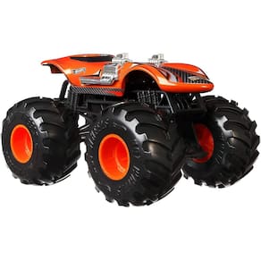 Hot Wheels Monster Trucks Twin Mill veículo fundido em escala 1:24 com rodas gigantes para crianças de 3 a 8 anos de idade, ótimos caminhões de brinquedo de presente em grande escala - Variedade ultrajante de caminhões Hot Wheels Monster Trucks em escala 1:24 com carrocerias de metal fundido duráveis! - Embalado com estatísticas incríveis na parte de trás, dando detalhes de sua força, ataque de colisão, motorização e muito mais! - Construído para quebrar e bater tudo à vista, esmagando qualquer carro no caminho! - Nada pode parar os veículos mais ruins já construídos para competição frente a frente! - Corpos grandes e rodas gigantes dão a esses caminhões de escala 1:24 favoritos das crianças a vantagem em terrenos mega acidentados.