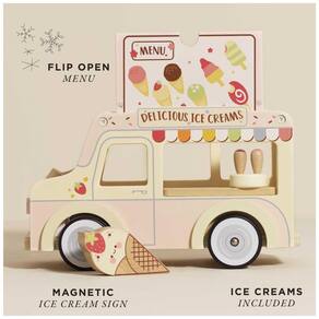 Pintado à Mão e Projetado com Cuidado: O Ice Cream Van da Le Toy Van é pintado à mão com cores vibrantes e cuidadosamente elaborado para inspirar a imaginação. Com detalhes que incluem adesivos para personalizar, teto elevável e janela de serviço, esse brinquedo torna a brincadeira ainda mais realista e divertida.