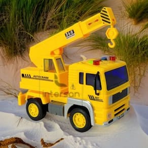 Este caminhão é uma miniatura de um veículo de construção com guindaste medindo aproximadamente 17cm. O caminhão de fricção de modelo construção vem com luz e som, o que o torna diferente e mais divertido. Possui design bem atrativo e com muitos detalhes. Além disso, o caminhão estimula a imaginação e a criatividade das crianças enquanto brincam!