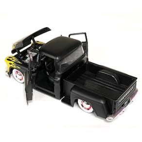 Caminhão Chevrolet Stepside MiJo Exclusives Jada Toys 1:24 1955 - Preto fosco com chamas amarelas - Just Trucks - 34294