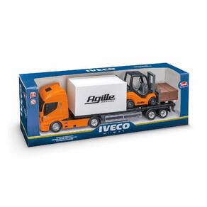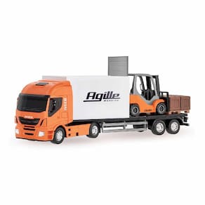 Caminhão Iveco Hi-Way com Empilhadeira Agille - Usual: modelo incrível. Idêntico aos veículos de verdade. Perfeito para as brincadeiras e aventuras das crianças apaixonadas por caminhões e tratores de brinquedo. O Iveco Hi-Way Transporter é uma réplica do tradicional veículo de transporte. A Empilhadeira Agille Working tem garfos ajustáveis e o conjunto frontal que se eleva para movimentação das cargas. O caminhão Iveco Hi-Way de transporte vem com lindos acessórios e a porta do baú que se abre. INFORMAÇÕES: • Produto: Caminhão Hi-Way Plataforma com Empilhadeira Agille • Coleção: Iveco Hi-Way • Veículos: - Caminhão: Iveco Hi-Way de transporte - Trator: Empilhadeira Agille Working • Marca: Usual Brinquedos • Linha: Iveco Hi-Way • Linha: Agille Working • Tipo: Caminhão e Empilhadeira de brinquedo • Tamanho (C x A x L): - Caminhão: 50 x 13 x 10 cm - Empilhadeira: 18 x 11 x 71.5 cm • Conteúdo: 1 Caminhão Iveco Hi Way, 1 Baú, 1 Empilhadeira, 1 Pallet e 4 caixinhas; • Recomendação: para crianças a partir de 03 anos de idade ESPECIFICAÇÕES: • Referência: 484 • Embalagem (C x A x L): 55 x 13 x 18.5 cm • Embalagem (Peso): 0.700 kg • Material / Composição: Plástico • Registro: 009922/2019 • Certificado: Órgãos Autorizados - OCP´S (Organismos de Certificação de Produtos) BENEFÍCIOS DE BRINCAR: - Eleva a autoestima - Estimula o raciocínio - Exercita o imaginário - Desenvolve a criatividade - Promove a socialização e interação - Desenvolvimento neuropsicológico - Estimula habilidades motoras básicas - Incentiva a comunicação e linguagem - Desenvolve aspectos emocionais e afetivos AVISO: - As imagens são meramente ilustrativas - Os tamanhos e medidas são aproximados - As cores e estampas dos produtos podem ter variações - As informações são de responsabilidade do fabricante ou fornecedor Ean: 7898300574849