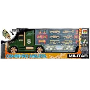 Caminhão Maleta De Veículos Militar Dm Toys - 5927 O Caminhão Maleta Militar é muito divertido Possui uma rampa para brincar com os carrinhos e uma alça para levar onde quiser. Tem capacidade para guardar até 24 carrinhos. Vem com 6 carrinhos e 10 acessórios Idade Mínima Recomendada: 3+ Anos Conteúdo da Embalagem:06 veículos, 10 acessórios Outras Informações: Com acessórios; Com rampa no caminhão; Com alça para carregar; Cabem até 24 carrinhos; Composição: Plásticos ABS e PP Medidas: Caminhão 54 cm (comprimento) Carrinhos 7 cm (comprimento)