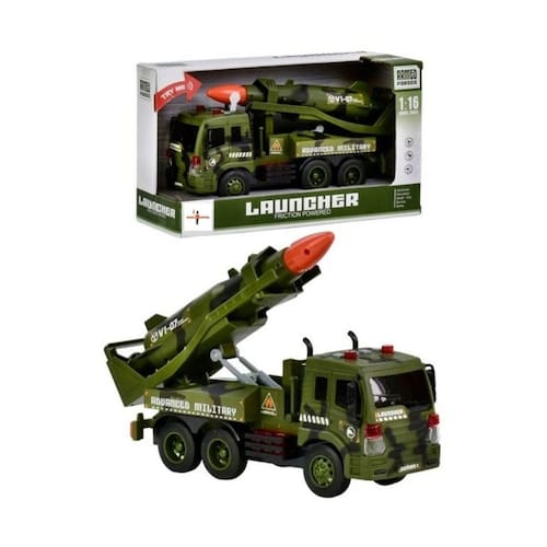 O Caminhão Militar com Lançador de Foguete com Fricção, Som e Luz é perfeito para crianças que adoram aventuras cheias de ação e estratégia! Com visual inspirado em veículos militares e detalhes marcantes, ele garante uma experiência de brincadeira ainda mais realista e empolgante. Equipado com sistema de fricção, basta puxar o caminhão para trás e soltar para vê-lo avançar rapidamente, sem necessidade de pilhas para o movimento. Para deixar tudo ainda mais emocionante, o brinquedo conta com efeitos de luz e som, que simulam operações militares e tornam cada missão muito mais divertida. O modelo possui lançador de foguete acoplado, deixando a brincadeira cheia de possibilidades e estimulando a imaginação das crianças na criação de diferentes cenários de ação.