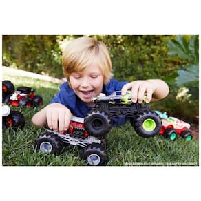 Acelere com esses incríveis Monster Trucks Hot Wheels em escala 124, perfeitos para crianças de 3 anos ou mais. Cada caminhão fundido apresenta detalhes incríveis que dão vida aos personagens do Monster Truck, além de rodas gigantes que aumentam as batidas, quebras e acrobacias. Os fãs podem colecionar seus favoritos do Hot Wheels Monster Trucks Live e recriar momentos épicos do show.