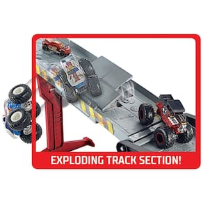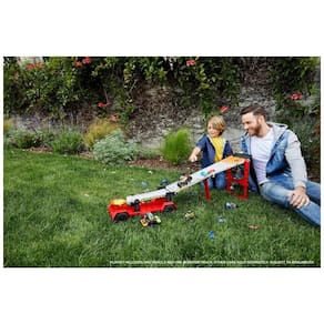 O Hot Wheels Monster Truck Downhill Race Go é um conjunto de corrida que oferece mais recursos do que qualquer outro conjunto de Monster Truck disponível. É uma corrida emocionante entre os carros Hot Wheels e os Hot Wheels Monster Trucks, onde o objetivo é esmagar e bater para ser o primeiro a chegar à Copa do Troféu. O conjunto apresenta uma Crash Ramp que cai quando atingida, fazendo com que os outros veículos voem Além disso, o conjunto também funciona como um Monster Truck Transporter, permitindo que você conecte um Monster Truck escala 1:64 na frente e vá embora O conjunto inclui um Monster Truck Hot Wheels e um carro Hot Wheels e é projetado para corridas de downhill divertidas para fãs de Hot Wheels e Monster Trucks.