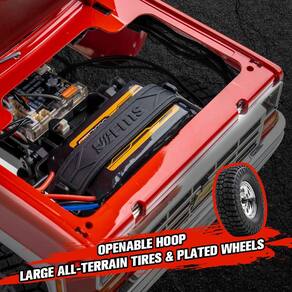 Este Chevrolet K10 tem uma aparência requintada, com muitos detalhes e decorações, fazendo você se sentir como se estivesse em um mundo em miniatura. Ele usa uma cabine espaçosa e um chassi de viga trapezoidal, como o carro real. O corpo bicolor é retrô e sofisticado; as peças como a grade dianteira, os pára-choques dianteiro e traseiro, os espelhos retrovisores etc. são todas galvanizadas para dar uma aparência e acabamento cromados; ele usa um plug-in de controle de luz consistente com o efeito real da luz do carro; os faróis, piscas e luzes traseiras podem ser trocados livremente de acordo com o transmissor; a porta traseira pode ser aberta e fechada, o que é conveniente para carregar várias peças de simulação 1:18, como motocicletas, caiaques e vários equipamentos de camping; há um amplo espaço sob o capô, então o a configuração eletrônica é clara à primeira vista e é conveniente para manutenção e atualizações diárias; combina pneus todo-terreno macios de grande porte com rodas galvanizadas de alta redução, permitindo que os usuários trilhem sem pressa ou corram em alta velocidade em qualquer terreno.