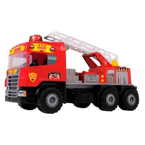 Caminhão Roda Livre - Super Bombeiro - Sirene e Luz - Magic Toys: Com esse caminhão cheio de detalhes, você vai participar de muitas aventuras emocionantes e de super resgates! Participe das missões de resgate mais emocionantes e realistas com o Caminhão Super Bombeiro da Magic Toys. Rodas livres para chegar a maior velocidade para cessar o fogo onde quer que ele esteja. Detalhes: • Escada extensível acionada por alavanca • Alavanca para girar a escada • Sirene com sons e luzes • Sons de sirene Informações: • Produto: Caminhão Super Bombeiro • Marca: Magic Toys • Coleção: Super Bombeiro • Tipo: Caminhão bombeiro de brinquedo • Categoria: Carrinhos e Cia • Tamanho (C x A x L): 72 x 40 x 29cm • Peso do Produto: 3.5 kg • Conteúdo: 01 Caminhão de Bombeiro • Recomendação: para crianças a partir de 03 anos de idade Especificações: • Referência: 5056 • Código de Barras: 7896839950561 • Embalagem (C x A x L): 74.2 x 35.5 x 30.6 cm • Embalagem (Peso): 3.7 kg • Material / Composição: Polipropileno • Alimentação: funciona com 3 baterias LR44 (não inclusas) • Registro: CE-BRI/IQB 001187 52303/18 • Certificado: Órgãos Autorizados - OCP´S (Organismos de Certificação de Produtos) Benefícios de brincar: • Eleva a autoestima • Exercita a memória • Estimula o raciocínio • Exercita o imaginário • Desenvolve a criatividade • Desenvolve percepção visual • Desperta a atenção e curiosidade • Desenvolvimento neuropsicológico • Estimula habilidades motoras básicas • Incentiva a comunicação e linguagem • Desenvolve aspectos emocionais e afetivo • Estimula o reconhecimento de formas e cores Aviso: • As imagens são meramente ilustrativas • Os pesos, tamanhos e medidas são aproximados • As cores e estampas dos produtos podem ter variações • As informações são de responsabilidade do fabricante ou fornecedor Ean: 7896839950561