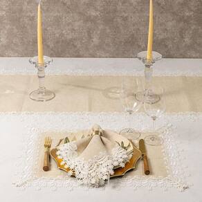 Caminho De Mesa Copa E Cia Anima Champagne Light Caminho de Mesa Copa e Cia Anima Champagne Light - Características Gerais do Produto: - Composição: Linen; Poliéster - Detalhes: Fabricado na Índia.; Peça Vendida de Forma Individual.; Design Exclusivo Copa&Cia.; As cores podem sofrer pequenas alterações de cor, variando de monitor para monitor.; Os objetos que ambientam as fotos não acompanham o produto.; As fotos produzidas são apenas como sugestão de uso com as demais peças da coleção.; Feito em poliéster com aspecto de linho.; Acabamento em Guipir(Renda) - Cuidados: Não Deixar de Molho.; Não recomendado limpar a seco.; Passar à ferro até 110C.; Armazenar em local seco e arejado.; Lavar à temperatura normal máxima de 30C.; Secagem em tambor é possível a baixa temperatura.; Evitar contato com objetos cortantes ou superaquecidos.; Não utilizar solventes, abrasivos ou alvejantes.; Não secar ao sol. - Dimensões (cm): largura: 38 cm; Comprimento: 160 cm Acompanha o produto: - 1 Peça de Caminho de Mesa Garantia: - 7 dias/30 dias contra defeito de fabricação